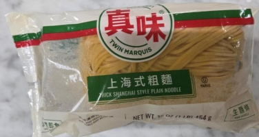 Twin Marquis LLC is voluntarily recalling one production date of individually wrapped Twin Marquis® Thick Shanghai Style Plain Noodle packages due to possible undeclared egg allergen. The affected packages of Shanghai Style noodles, which do not list egg as an ingredient, may mistakenly contain Lo Mein noodles, which are made with egg. People who have an allergy or severe sensitivity to eggs run the risk of serious or life-threatening allergic reaction if they consume these products.