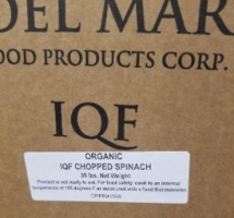 Sno Pac Foods of Caledonia, MN, is recalling Del Mar 35 LB Bulk Organic Frozen Spinach and Sno Pac10 oz Organic Frozen Cut Spinach because they have the potential to be contaminated with Listeria monocytogenes.