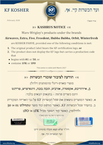 As of March 1, 2026, only limited special production items will be certified by OK Kosher and these will have the OK Kosher symbol prominently displayed next to the date code.