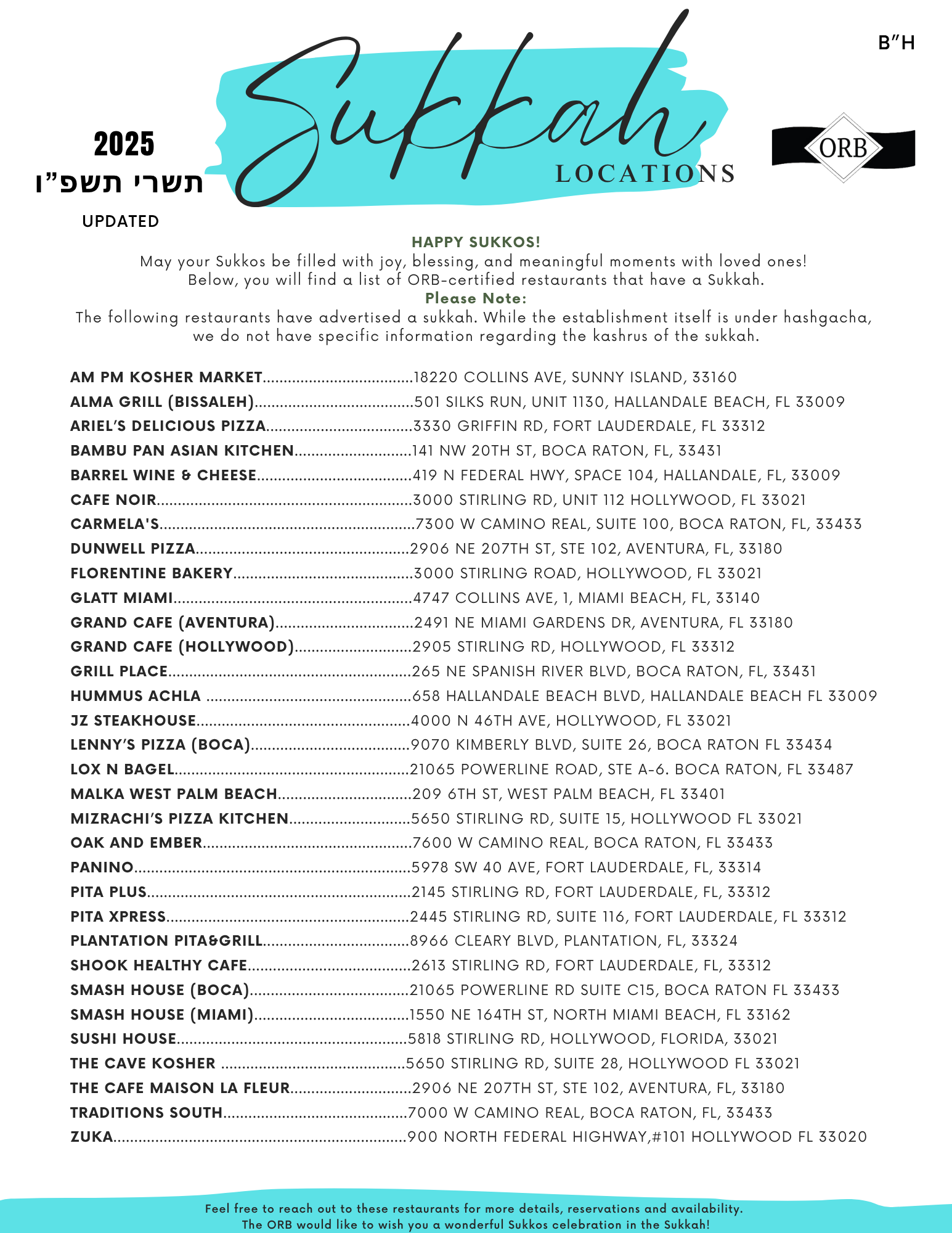 - October 9, 2025: ORB list of restaurants with sukkahs (Broward County, FL) is here
