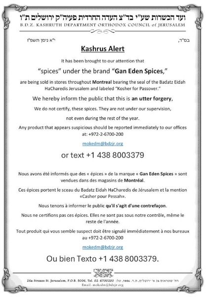 Copyright © kashrut.com. Permission is granted to reprint these alerts if kashrut.com is credited as the source of the information.