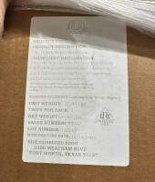 The product comes in a 35 LB box with lot codes 250107A, 250107B, 250107C, 250107D, 2501071, and 2501073, with exp 1/7/27 or a 10-ounce, poly retail package marked with lot codes SPM1.190.5 with best by 7/9/27, SPC1.160.5 with best by 6/9/27, SPC2.160.5 with best by 6/9/27, and SPM1.097.5 with best by 4/7/27.